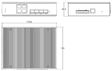 产品型号: T644MST4-SFP 产品端口: 4个千兆电口+4个万兆光口 管理端口: 1个Console口 复位键: 1个恢复出厂设置键 交换容量: 1.2Tbps 包转发率: 406Mpps MAC地址: 支持32K MAC地址表;支持自动更新,双向学习; 工作温度: —40~80°C 存储温度: —40~85°C 工作湿度: 10%~90%无凝结 存储湿度: 5%~95%无凝结 输入电压: DC 12-52V,PoE:DC48-57V 支持双电源冗余 支持反接保护 外观尺寸: 175.6x135x45.5mm (长 x 宽 x 高) 整机重量: <0.7Kg 整机功耗: <15W